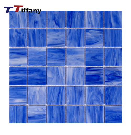 Description: The stained glass blue mosaic tiles, color bright, beautiful nature, it is widely used in wall decoration, bathroom, hotel, swimming pool.